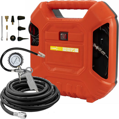 Kompressor 8 BAR 24 Liter Kessel im Set mit Druckluftpistole Spiralschlauch. Für Auto, LKW, Wohnmobil, Fahrrad, Motorrad usw. und Werkzeuge.