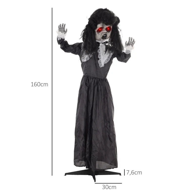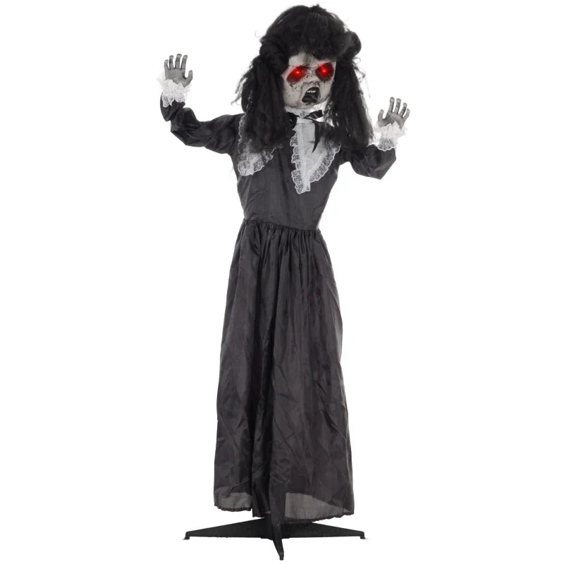 Animierte Halloween-Dekoration – Schwarzes Lolita-Mädchen mit Sound, LED & Bewegung (160 cm)