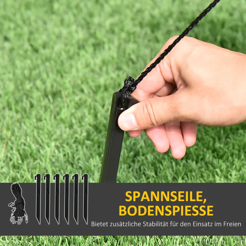 🪦 Stabiler Stand dank Heringen, Seilen & Sandsäcken