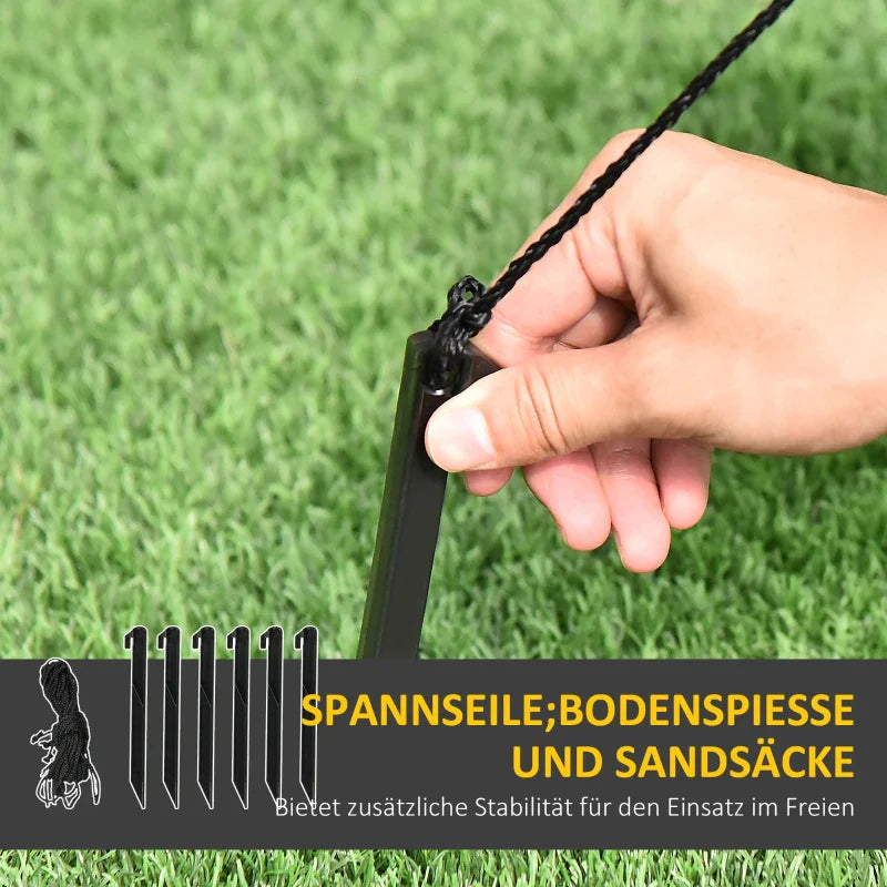 🪦 Sicherer Stand dank Heringen, Spannseilen & Sandsäcken