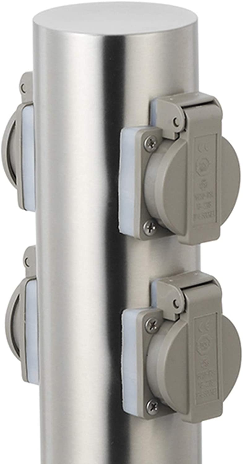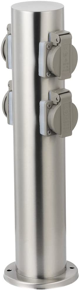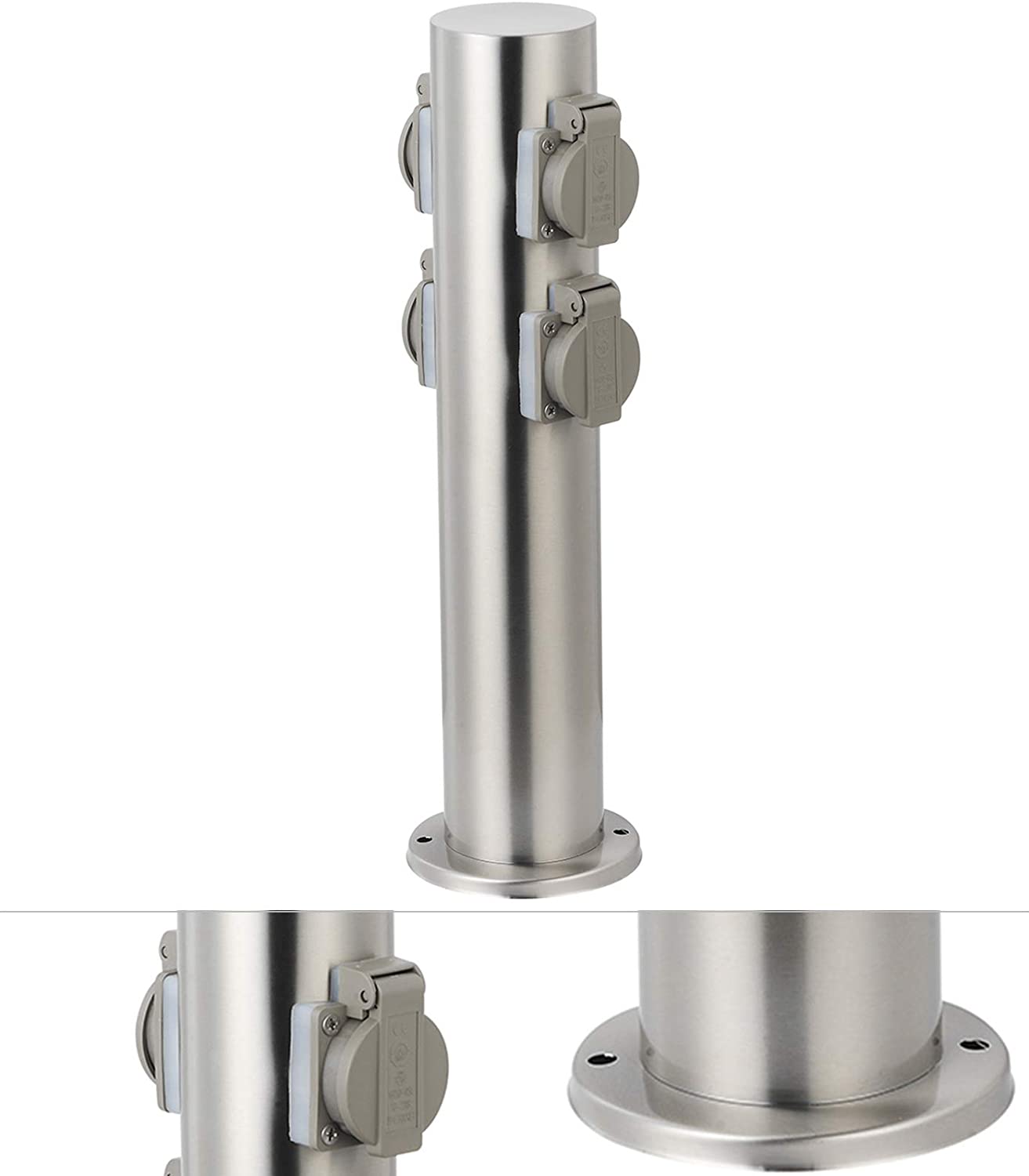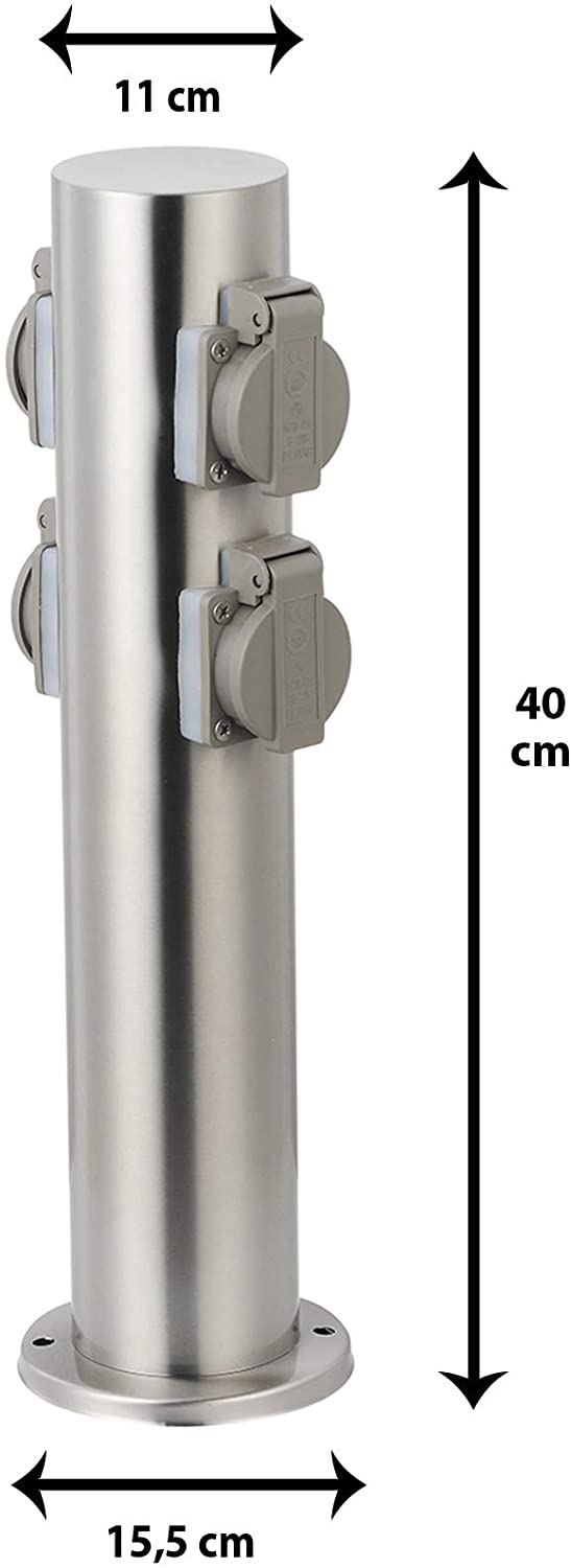 DETAILS: Anschluss an 230V per in der Säule versenkbarer Verdrahtungsmöglichkeit | Anzahl Steckdosen: 4 | Maße ca. Ø 11cm, Höhe: ca. 40cm| Schutzklasse: IP44 | incl. Dübel und Schrauben zur schnellen Montage
