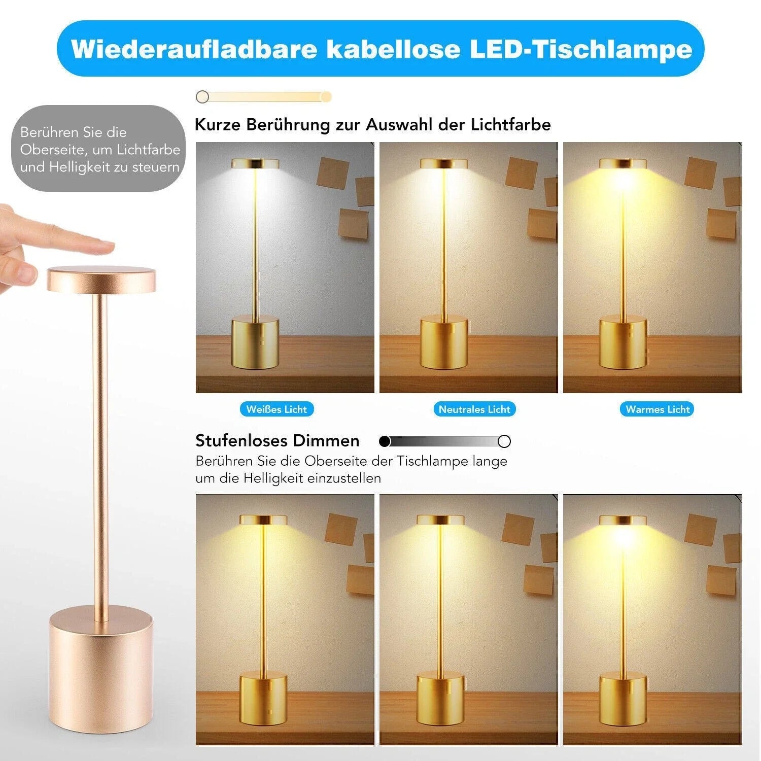 Die moderne Akku-Tischlampe mit 1800 mAh Akku bietet 8–10 Stunden Leuchtdauer und kann auch während des Ladens verwendet werden. Dank Sicherheitszertifizierung und langlebigem Design ist sie die perfekte Wahl für Wohnzimmer, Schlafzimmer, Büro, Restaurant, Bar, Café oder Hotelzimmer.