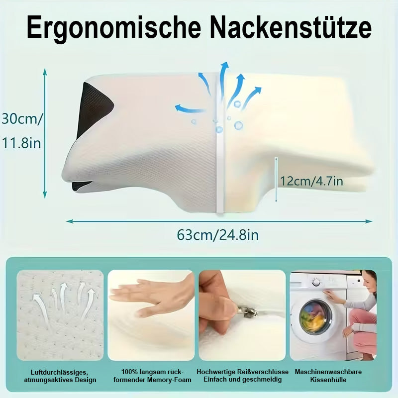 Ergonomische Nackenstütze – luftdurchlässige cervikale Unterstützung für entspannten Schlaf (Kostenlos 6 Wochen Probeschlafen)