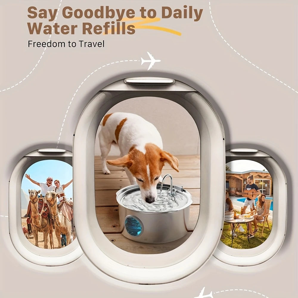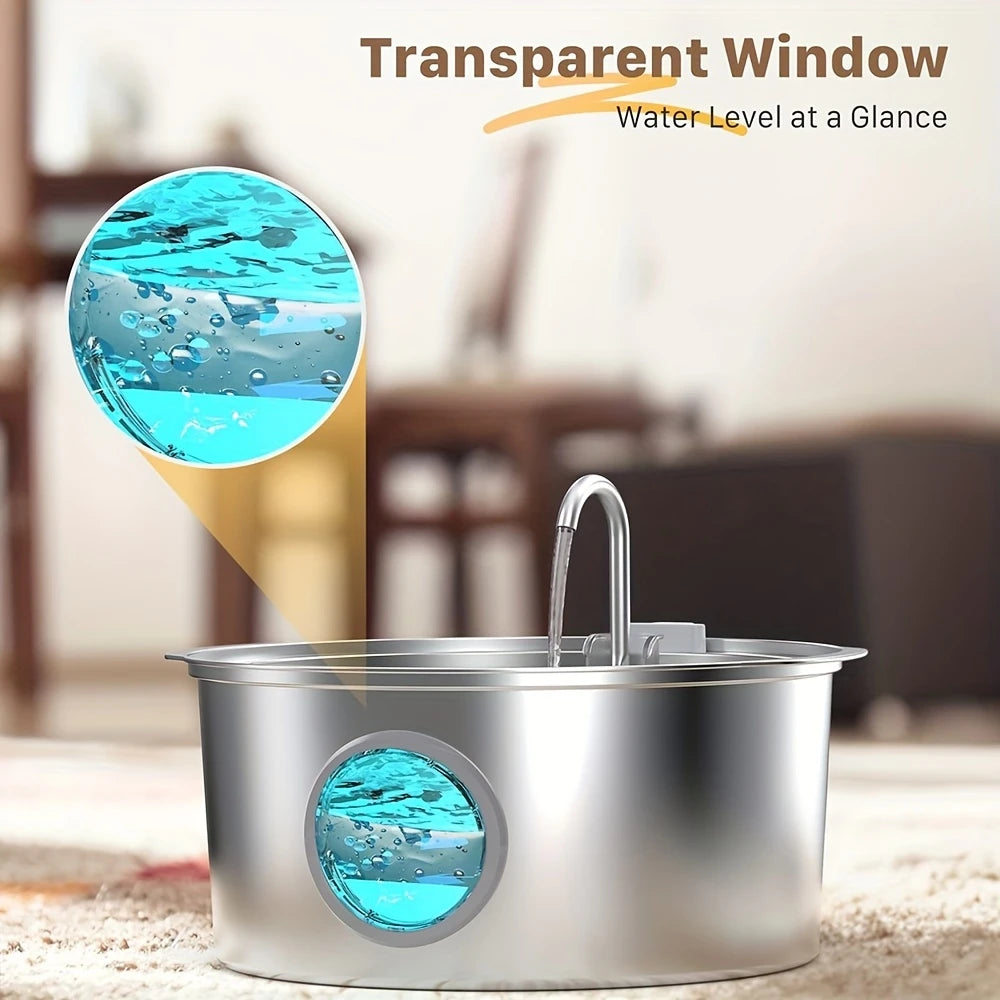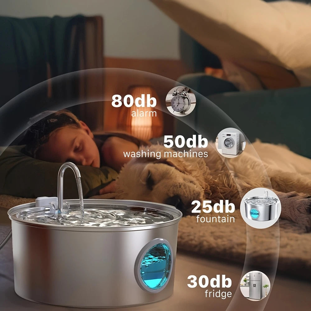 Edelstahl-Trinkbrunnen für Hunde & Katzen – 7 L Volumen, leise & automatisch mit Filter. Ohne Akkubetrieb.