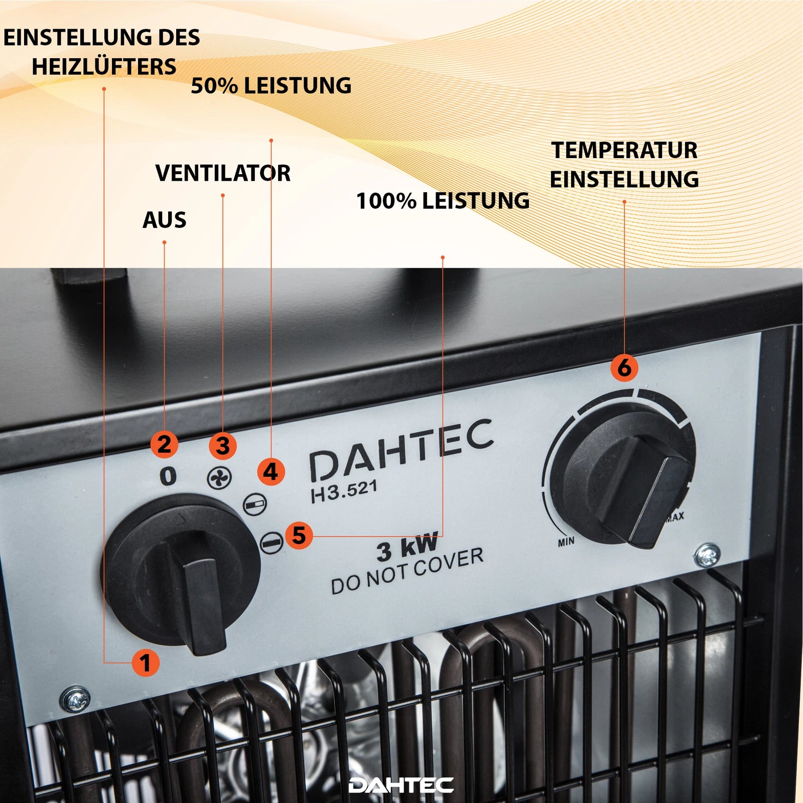 Der Heizlüfter verfügt über drei Leistungsstufen: