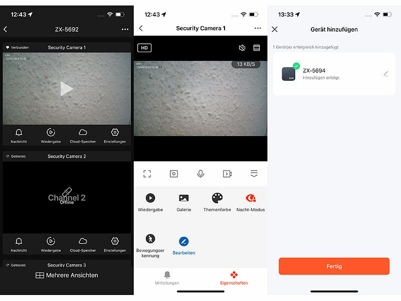 E-Mail-Benachrichtigung bei Bewegung vor den Kameras, mit Kamera-Zugriff per PC und Browser