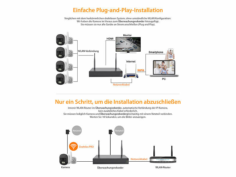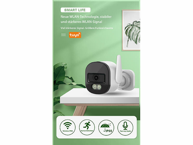 Perfekt für Haus, Hof, Einfahrt & Co.: Dank wetterfestem Gehäuse sind die Kameras ideal für den Einsatz im Freien geeignet. Mit bis zu 120 Metern Funk-Reichweite setzen Sie das System besonders bequem und flexibel ein - ganz ohne umständliches Kabelverlegen!
