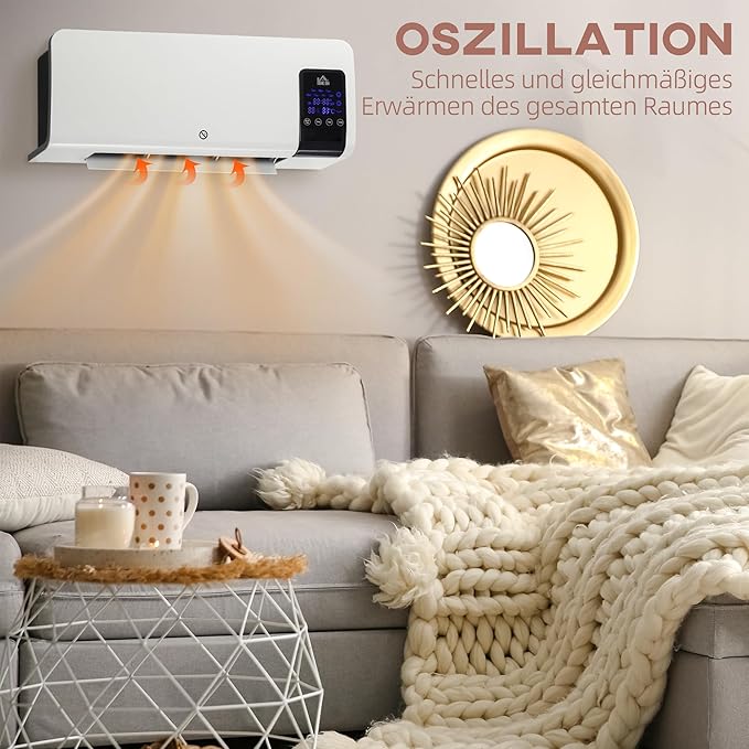 2 Heizmodi (niedrig / hoch) + Schwenkfunktion für gleichmäßige Wärmeverteilung