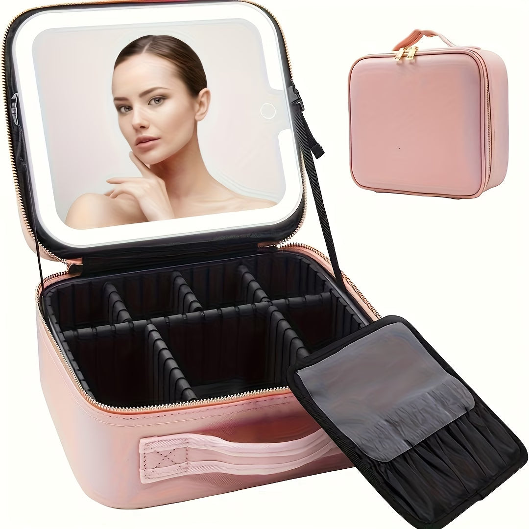 Beleuchteter LED-Premium Kosmetiktasche mit Doppelspiegel – Make-up Tasche & Schminkkoffer für Damen. Beleuchtung angenehm einstellbar.