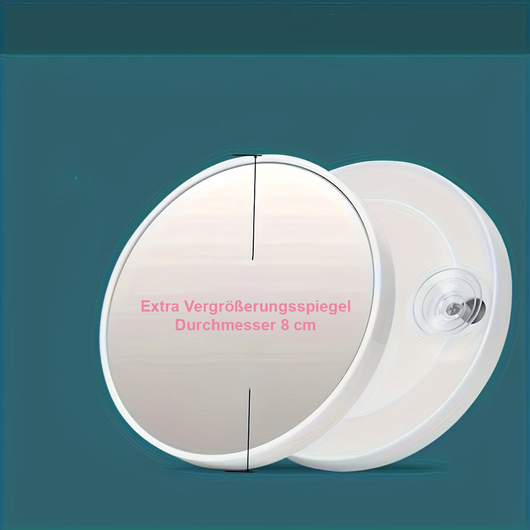 Ausgestattet mit einem normalen LED-Spiegel und einem Vergrößerungsspiegel für präzises Schminken.