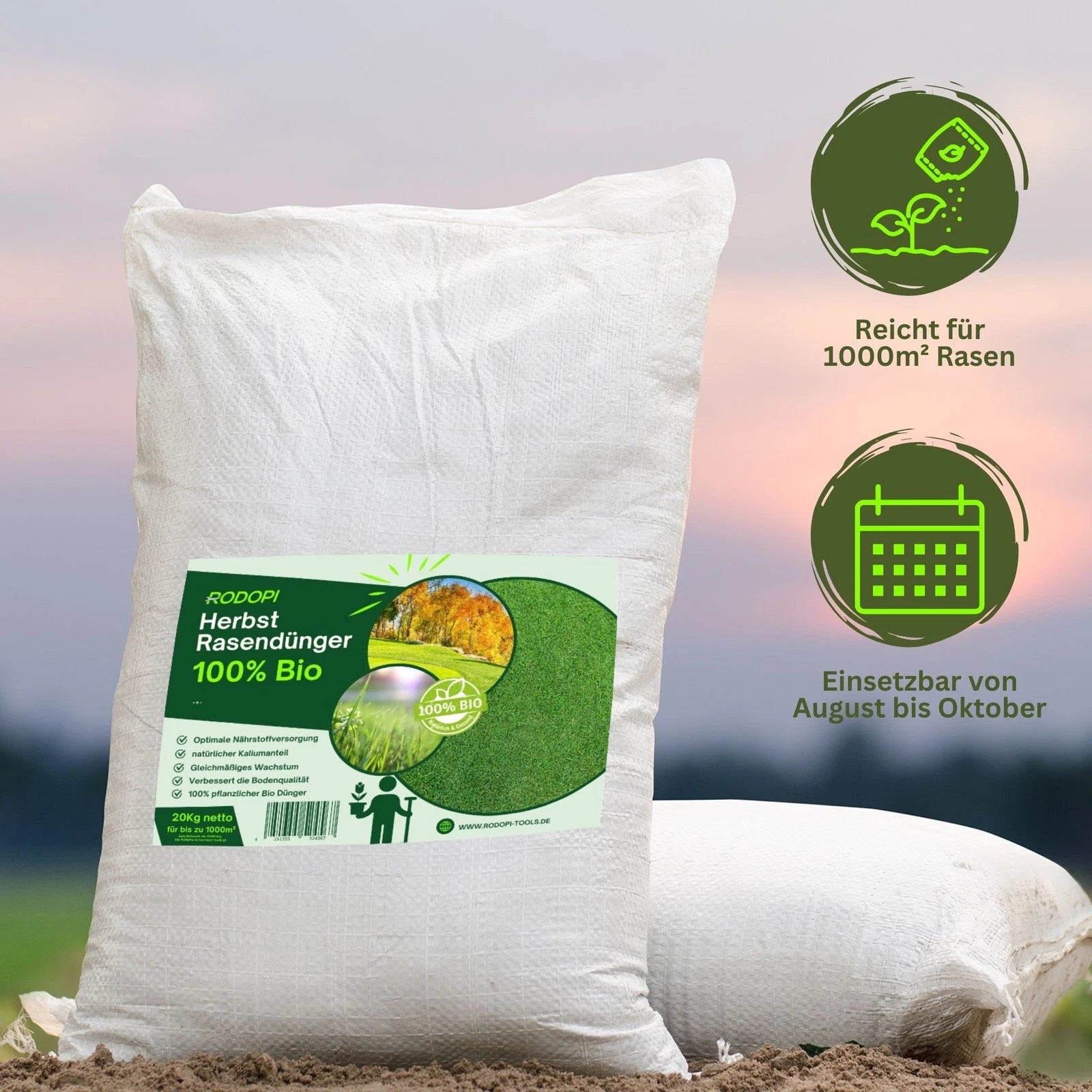 100 % Pflanzlicher Bio Herbstrasendünger – Kaliumreich, staubarmes Granulat