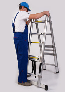 Das sind einzigartige Multifunktions - Teleskop-Klappleiter der neuen Generation. Dank der innovativen Technologien zeichnen sie sich durch die einwandfreien Lagerung - und Beförderungseigenschaften aus und ersetzen mehrere Arten der Standartleiter. Sie werden sowohl im privaten als auch im gewerblichen Bereich verwendet. Diese Aluminiumleiter werden gemäß neuesten Technologien aus Aluminium der höchsten Qualität hergestellt. Das gewährleistet lange Dienstzeit und Stabilität in der Arbeitsumgebung.