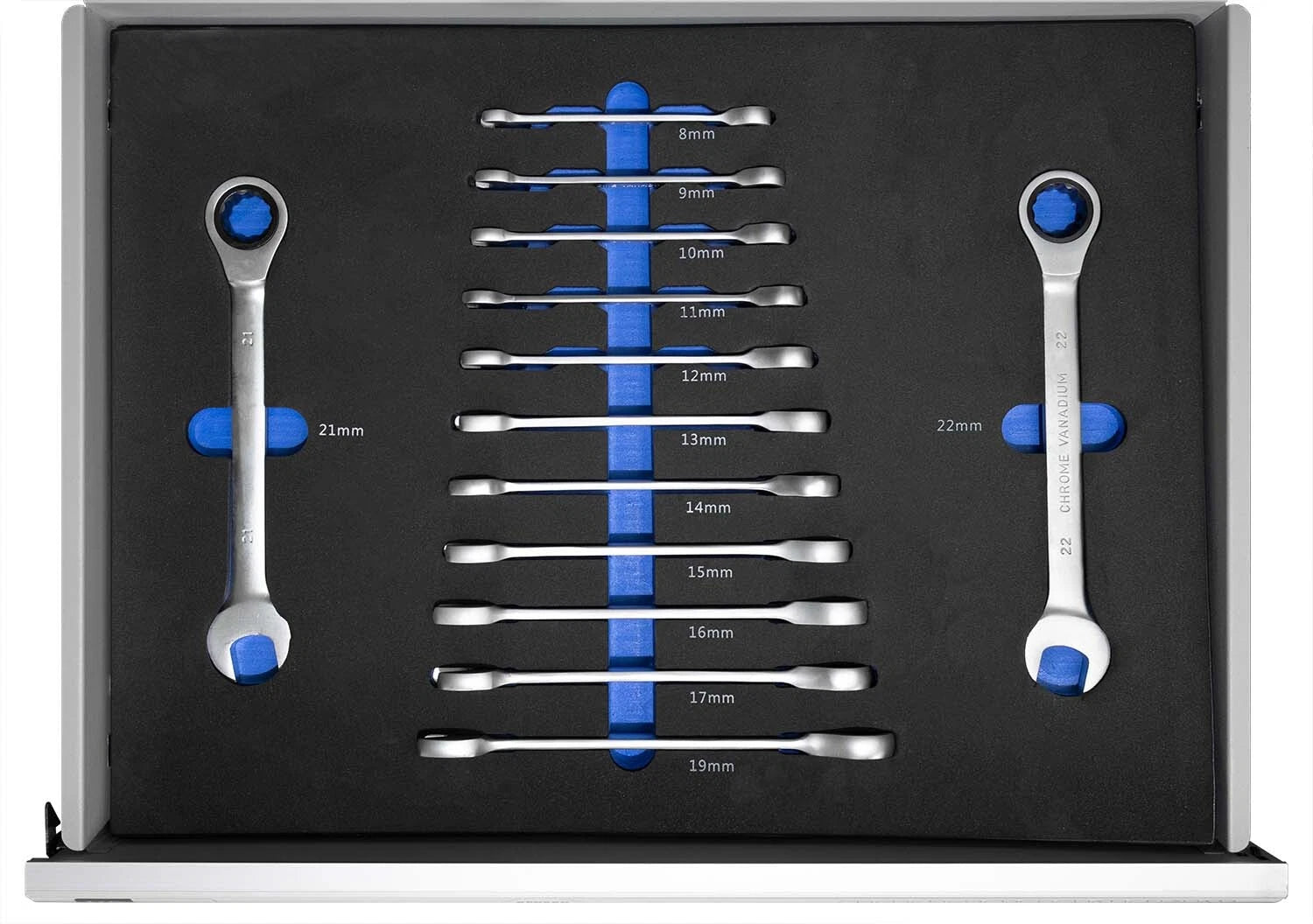 Maul-/Ring-Ratschenschlüssel (8–17 mm, 19 mm, 21 mm, 22 mm)