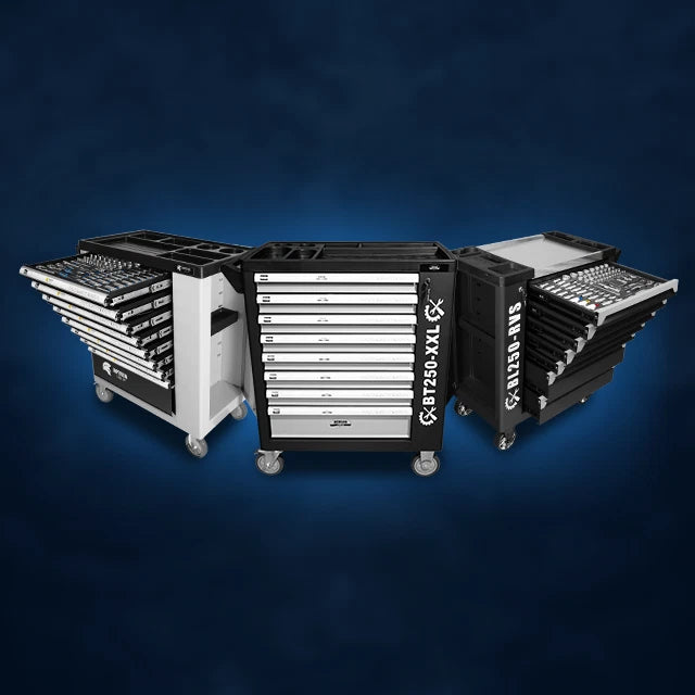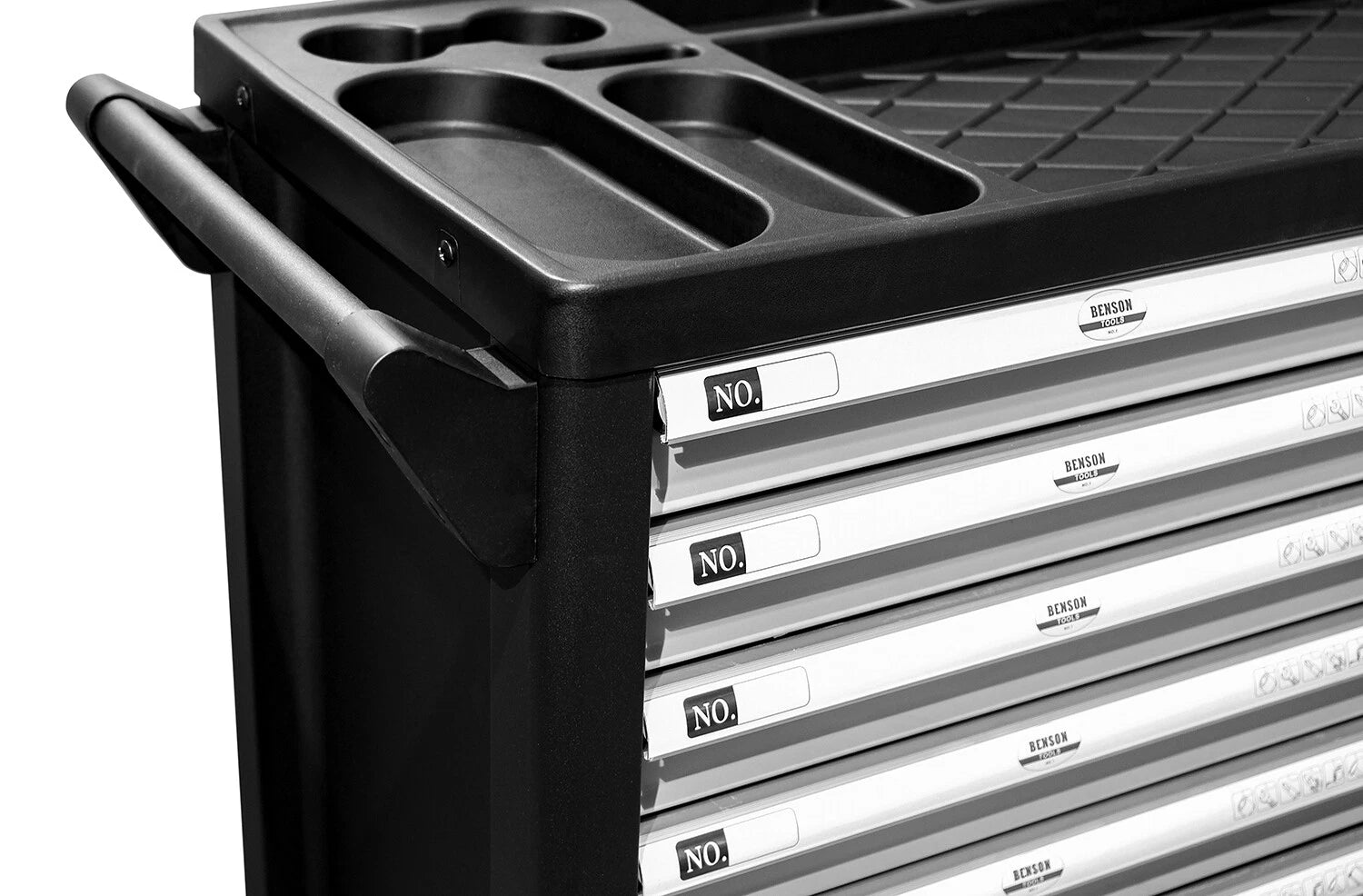 - Mit diesem Handgriff, sowie unseren vier breiten und großen Vollgummiräder (2 lenk- und 1 feststellbar) sorgen für präzise und leichte Rangierbarkeit des Werkstattwagens.